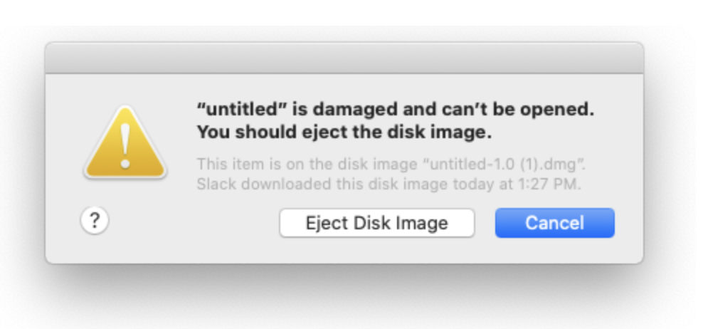 By default, Apple does not allow users to execute unsigned applications downloaded from the internet. Users attempting to run such applications will be faced with an error like this: